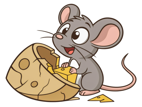 Adorable cartoon mouse with big ears isolated on transparent background smiles happily