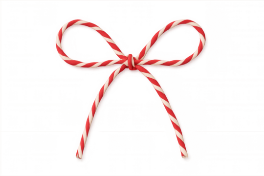 Red and white striped twine bow tied for a gift box, celebrating holidays and special occasions, transparent background