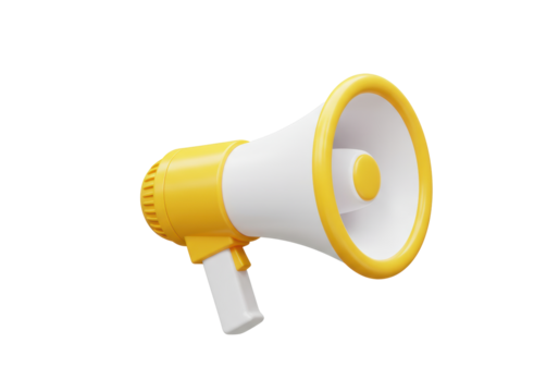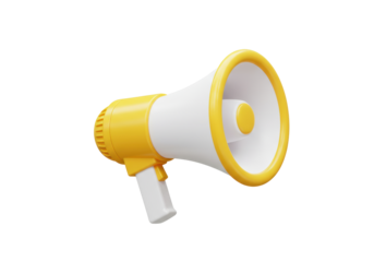Isolated Yellow and White Megaphone Loudspeaker for Audio Amplification or Cheerleading