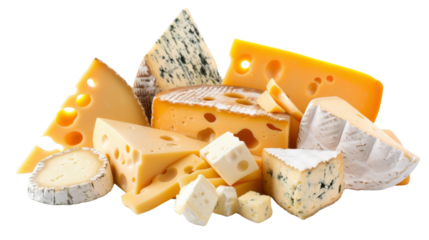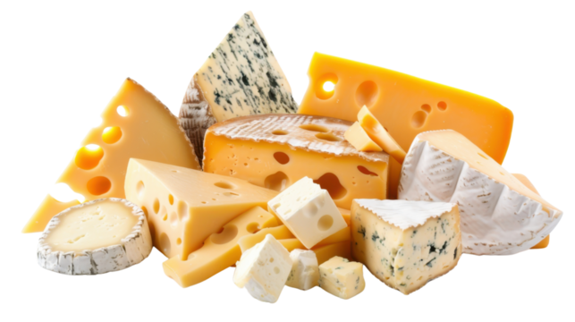 Set of various cheeses on transparent background