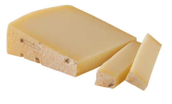 Dutch cheese wheel isolated on a white transparent background. Concept of dairy products and cheese varieties in food photography