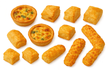 Collection set of cheese puff pastry squares isolated on transparent or white background, png