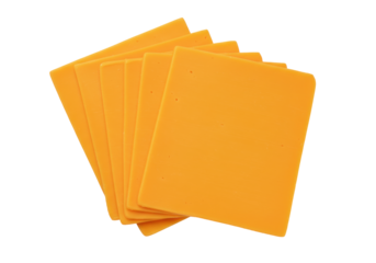 Stack of yellow cheese slices isolated on white background. Perfect for food, dairy, and kitchen-related projects or advertisements.
