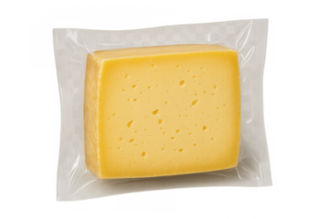 Processed cheddar cheese slice with rounded corners on transparent background for food preparation