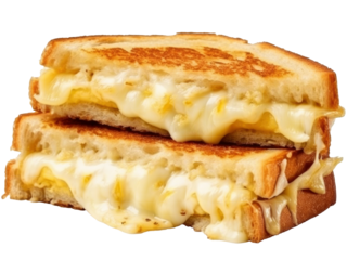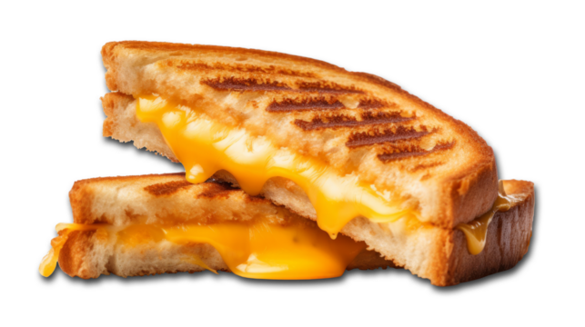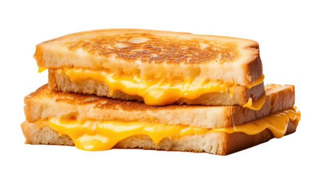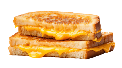 Classic grilled cheese sandwich with melted cheddar on toasted bread isolated on the transparent background