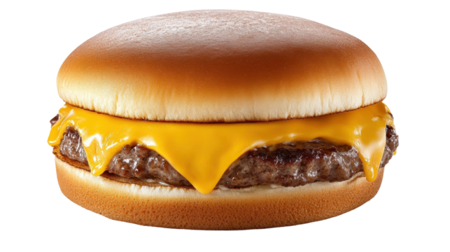 Delicious cheeseburger on transparent background with melting cheese