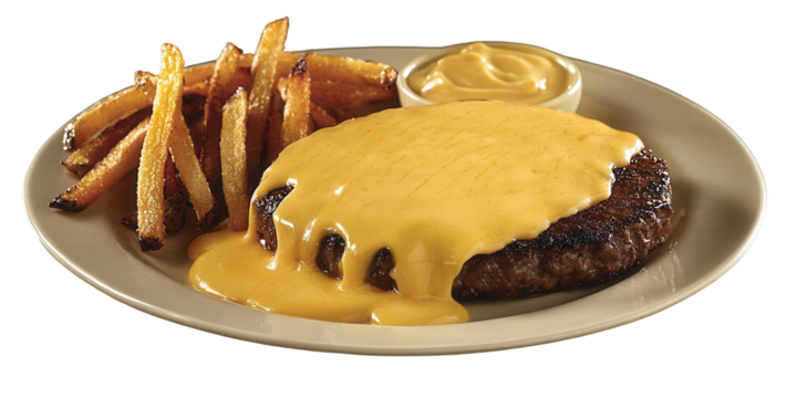 Delicious cheesy burger with fries restaurant food transparent background close-up culinary delight