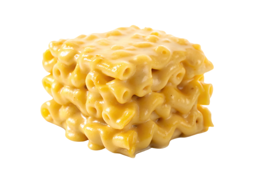 Creamy macaroni and cheese pile with elbow pasta and cheese sauce, isolated on a transparent background