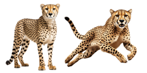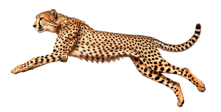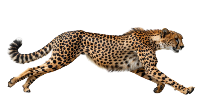 High resolution cheetah running wild animal feline predator mammal wildlife safari hunter speed fast isolated on transparent background