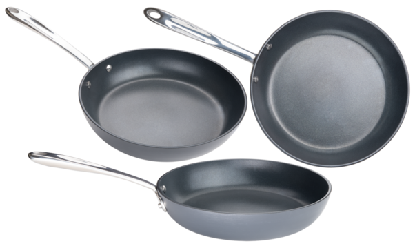 Frying pan. Ceramic nonstick pan with stainless steel handle. Fry pan for cooking. Gray ceramic coating. Free of PFAS, PFOA, lead and cadmium. Professional chef kitchenware. White isolated background