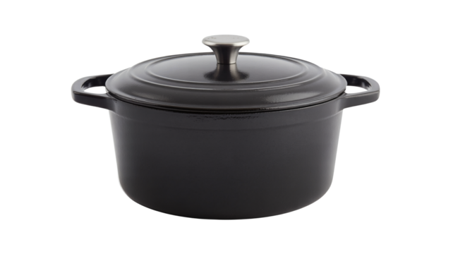 Elegant black cast iron pot with lid, perfect for gourmet cooking