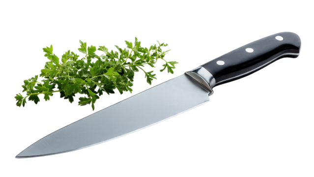 Chef's knife with parsley