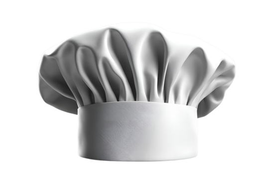 Classic white chef hat with a tall, pleated design, perfectly isolated.