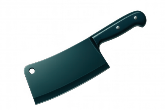 Meat cleaver PNG isolated on transparent background, heavy duty butcher knife with green handle for food preparation and cooking