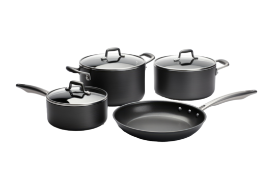 Set of Pots and Pans on White Background. On a Clear PNG or White Background.