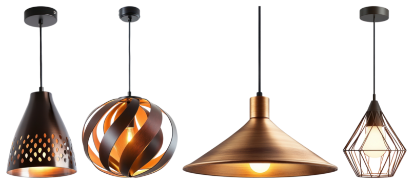 Modern Geometric Pendant Lamps Black Gold Interior Lighting Design, Transparent Background, Ai Generative Images