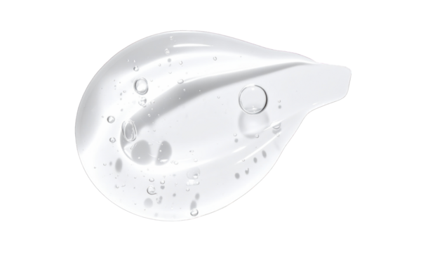 Translucent viscous substance smear with bubbles, against a black background