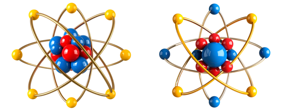 3D Atom Structure with Protons, Neutrons, and Electrons, Isolated on White Background PNG