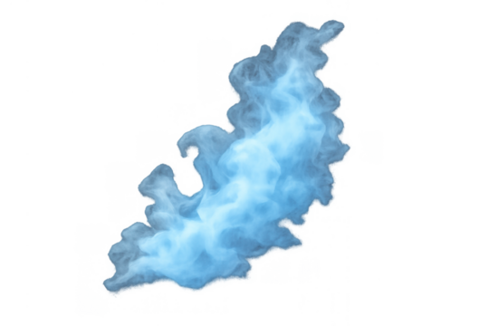 Blue smoke cloud puffing and swirling, abstract vapor stream for design element with transparent background