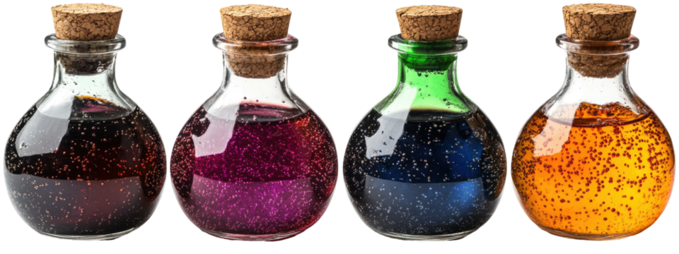 Chemistry lab experiment with flask in science, isolated on transparent background, png set