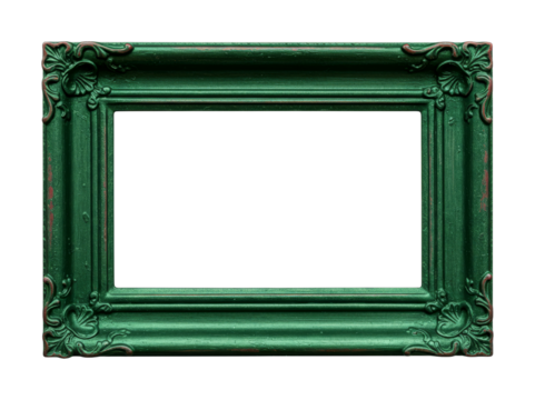 Ornate antique green picture frame featuring elegant decorative carvings and a distressed finish, perfect for displaying cherished memories.