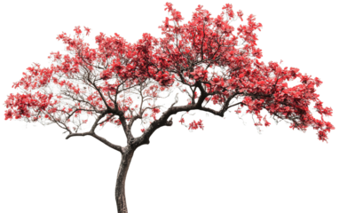 A tree with red flowers on white background,png