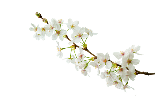 A delicate branch of pink cherry blossoms in full bloom, isolated on a transparent background