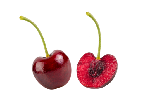 Suspended Cherries in Motion, Isolated on transparent background, PNG file