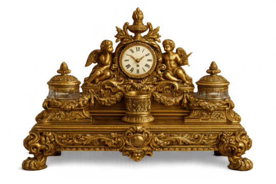 Ornate Golden Clock with Angels on a transparent background image