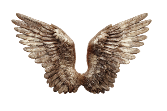 Pristine, outstretched white wings against a transparent background. Feathered, ethereal