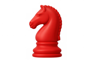 Red knight chess piece positioned on clear surface, symbolizing strategic gameplay and competitive spirit
