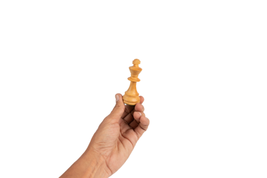 Wooden king chess piece isolated on transparent background