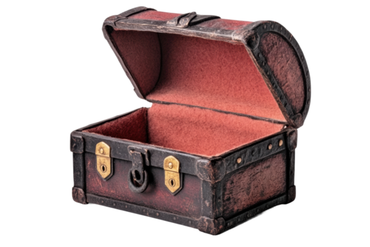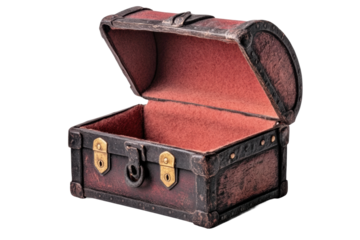 A weathered wooden chest with sturdy metal clasps hinting at untold stories and hidden on transparent background
