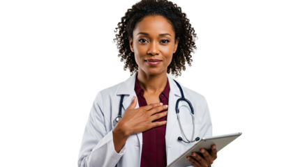 Hands holding digital devices on transparent background