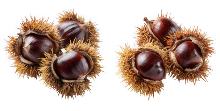 Close up of sweet chestnut fruit isolated on transparent background, a delicious and healthy ingredient for autumn harvest and seasonal cooking