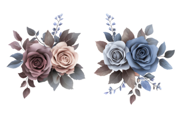 Elegant floral composition with blue and yellow leaves transparent background