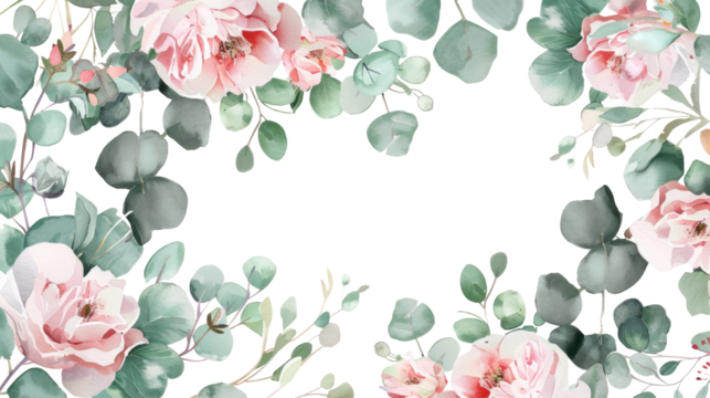 Transparent floral border with ornamental design for invitations