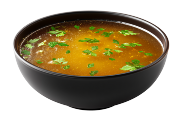 Delicious bowl of chinese chicken soup featuring chicken drumsticks and herbs close up transparent background