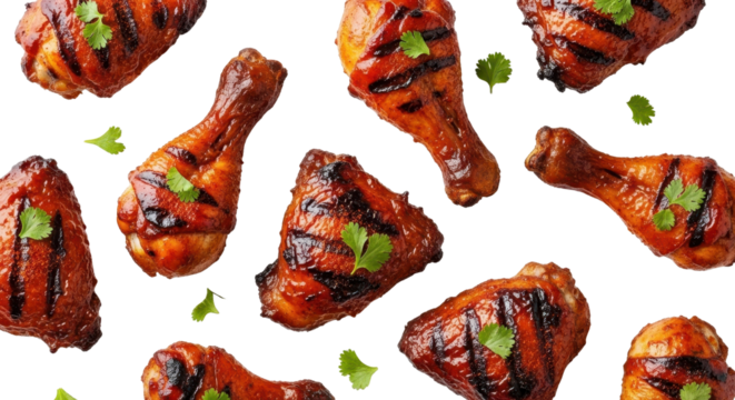 Grilled chicken drumsticks food pattern isolated PNG with Transparent Background