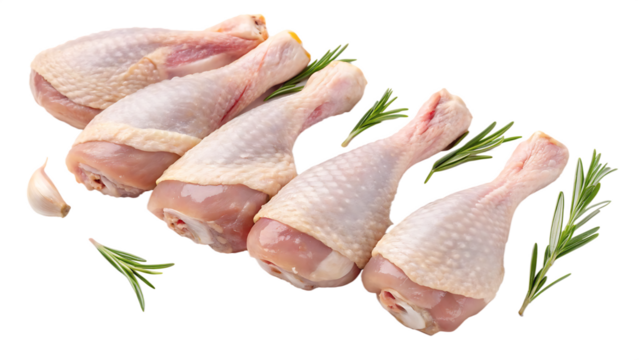 Grilled Chicken Drumsticks: A mouthwatering close-up of perfectly grilled chicken drumsticks, glistening with savory juices, and adorned with fresh rosemary sprigs, ready to tantalize taste buds.