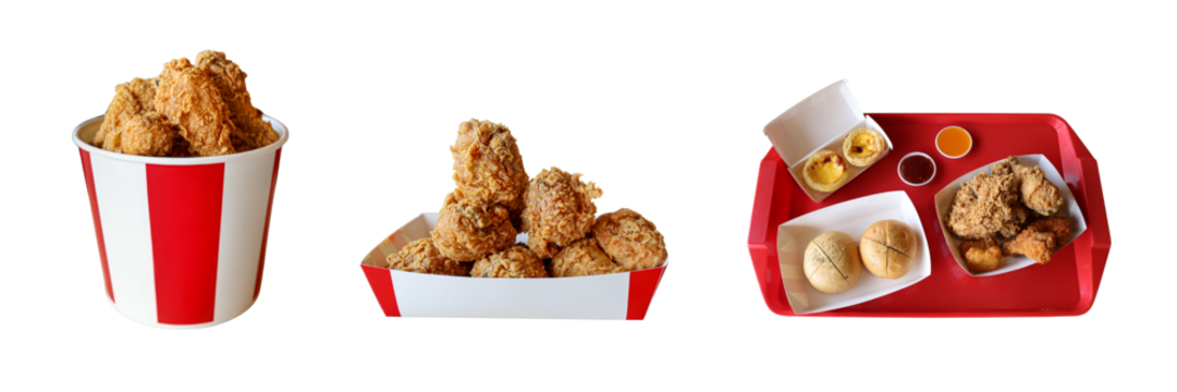 Three chicken tenders on transparent background for design projects.