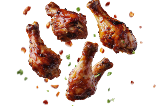 Floating barbecue chicken on transparent background. PNG