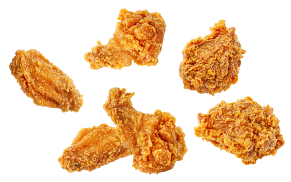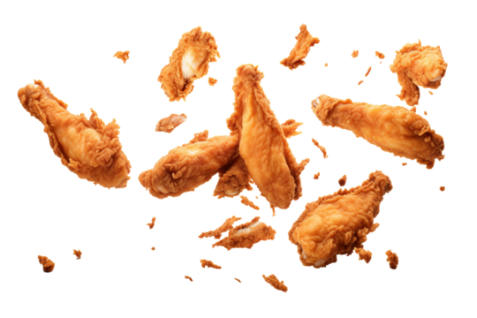 fried chicken meat falling isolated on transparent background