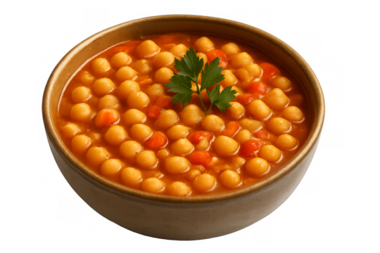 Authentic Turkish chickpea stew isolated on a white, transparent background, PNG format, rich in spices, classic Mediterranean food