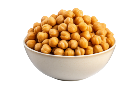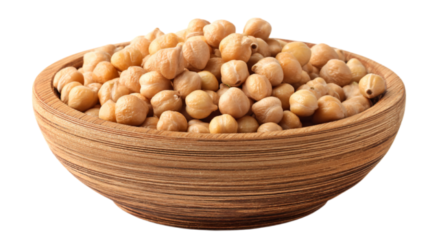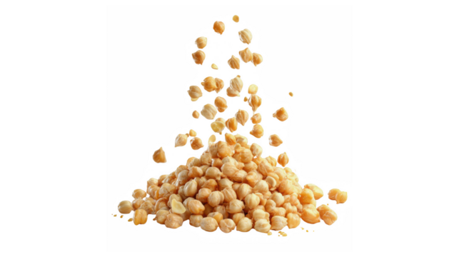 Dried chickpeas isolated on a transparent background. Scattered raw garbanzo beans, organic legumes for healthy cooking and plant-based diets.
