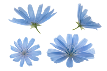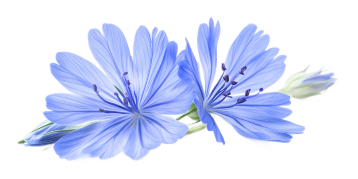 Isolated chicory flower blossom against a clean white backdrop adding elegance
