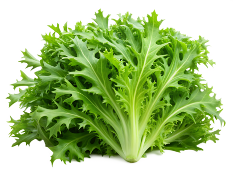 Fresh green leaves of endive frisee chicory salad isolated on white background. AI GENERATED