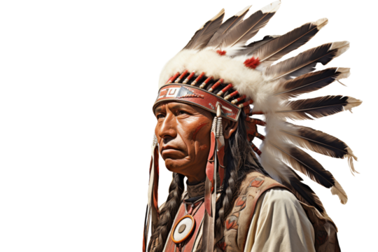 Choctaw chief with ceremonial headdress, isolated on white background