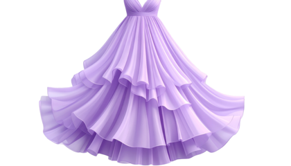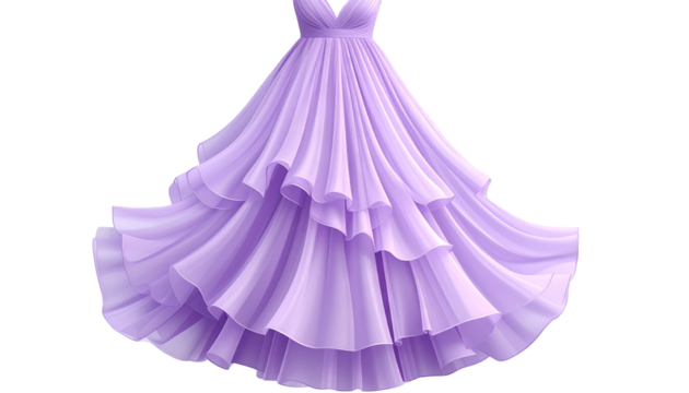 high-low hem chiffon evening dress with layered ruffles and soft  isolated on transparent background, PNG format.