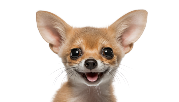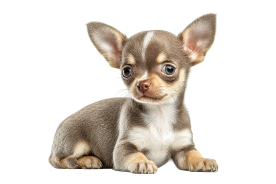 PNG Adorable chihuahua puppy with large ears resting on white background